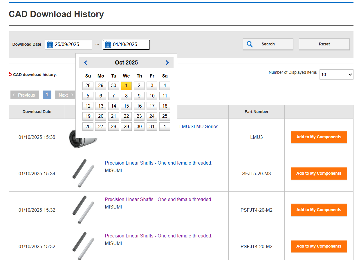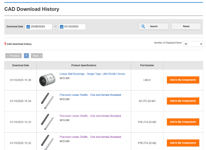 When you click "Search" in the state, you will see the CAD Download history with the specified period.