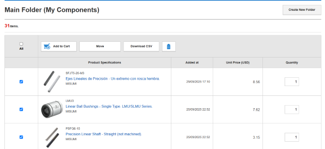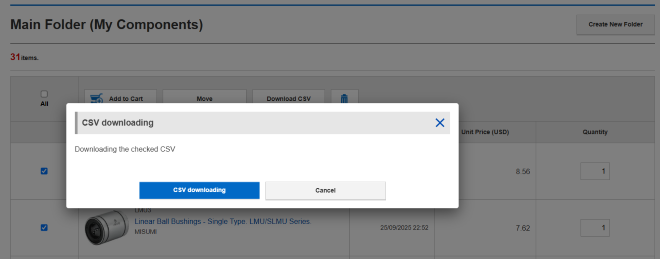 2 From the product list, select the products to be listed in the downloaded CSV file