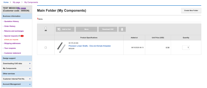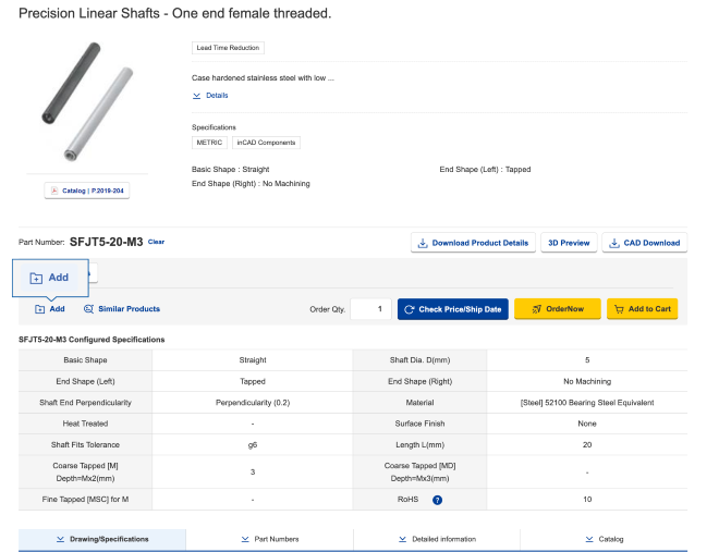 1. When you are viewing a specific product on the screen (product page), you can save the product information, including part number and specifications to My Components for later review.Just click the Add button to save the information in My Components.