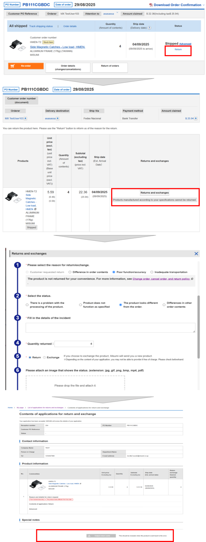 Procedure for Exchanges and Returns Due to Misumi's Fault