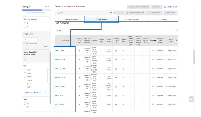 Select specifications and dimensions to narrow down candidate model numbers and select the desired model number from the model number list.