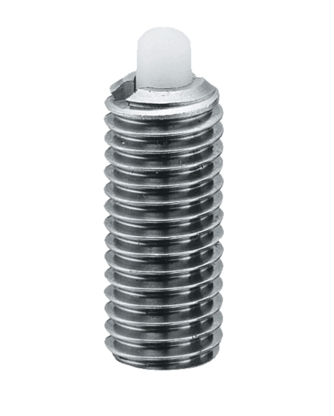 Components used to exert pressure on a part or system, either to position, eject or secure. Have different materials at the nose (tip), such as resins or steel.