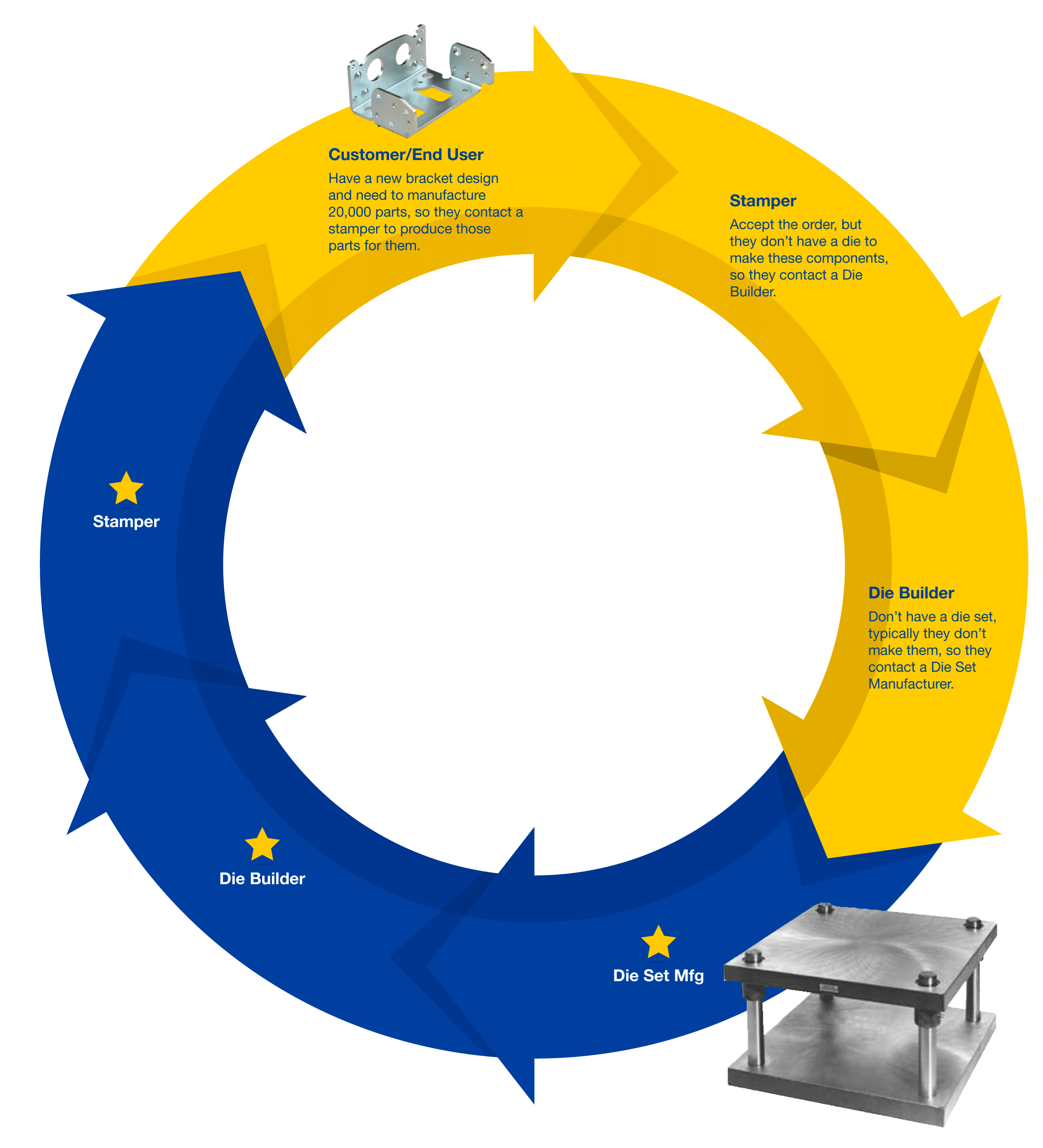 Dies are specialized tools employed in manufacturing processes to cut or shape a material or final product using a press. Dies are customized to mass produce the specific item that is required.