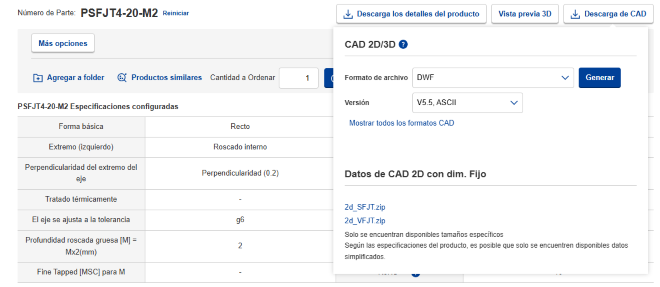 Para descargar datos CAD de las páginas de productos, siga las instrucciones a continuación.