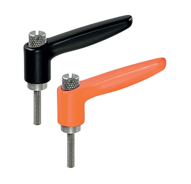 También conocidas como manijas de sujeción, son palancas usadas para sujetar o fijar componentes, placas, etc. Estas manijas suelen estar diseñadas de manera ergonómica para facilitar el agarre y mejorar la comodidad del usuario.