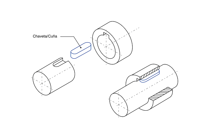 Son elementos mecánicos para la transmisión de par de torsión entre un eje y un componente rotativo, como engranajes, poleas o acoplamientos. Funcionan mediante un ajuste en una ranura (chavetero) realizada en el eje y la pieza, garantizando una unión segura y evitando deslizamientos relativos durante la operación.