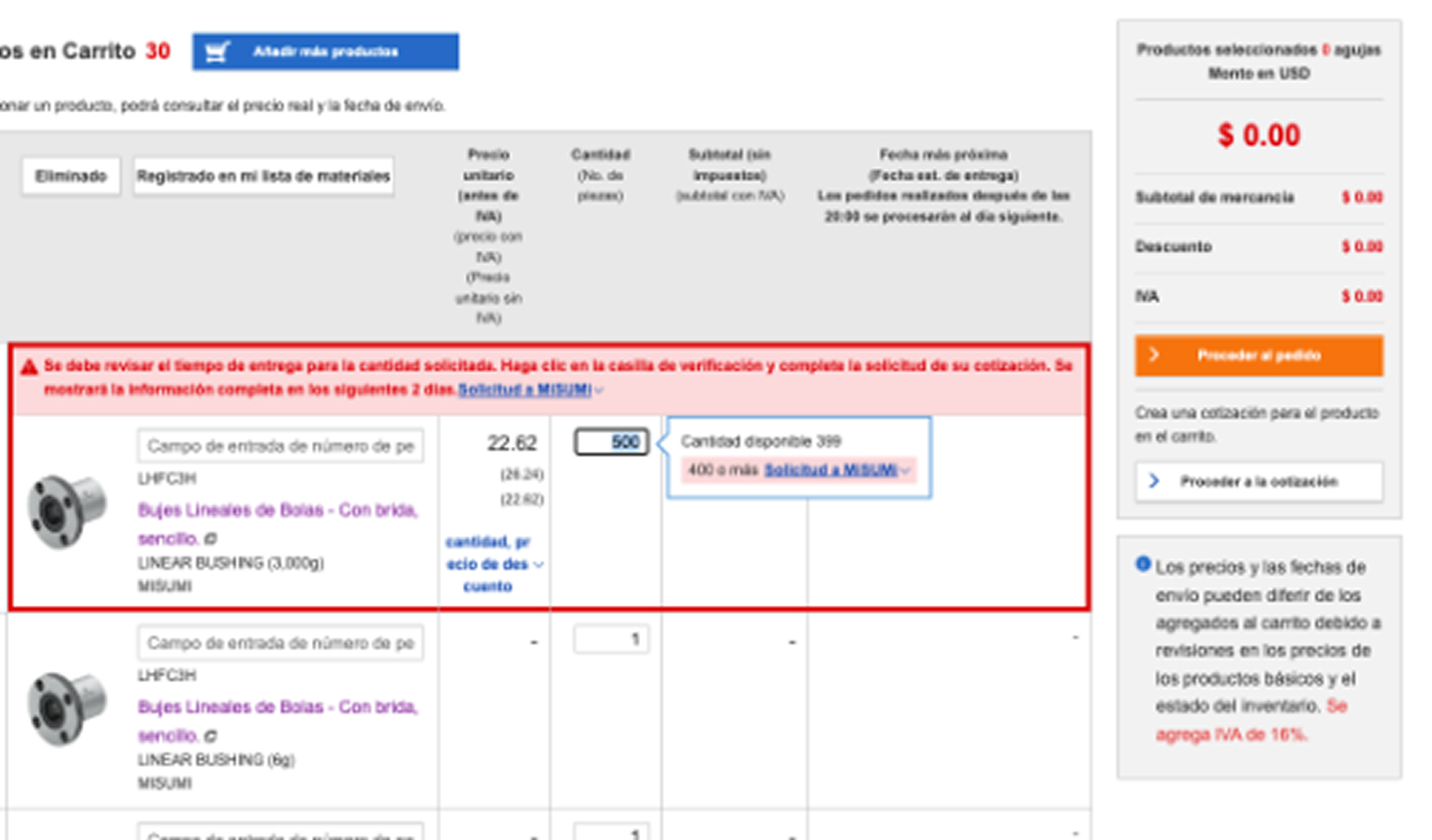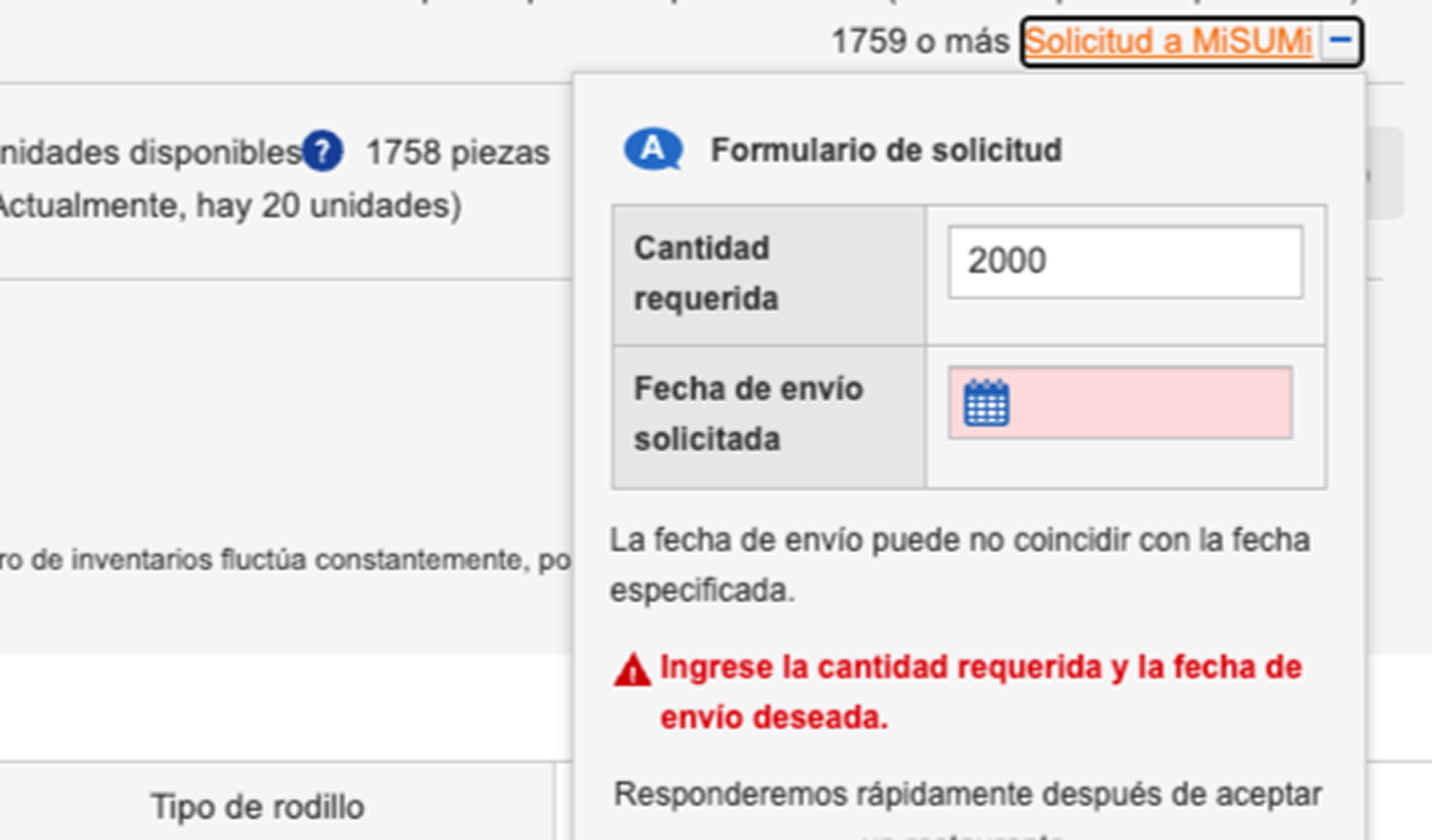Si al pedir una cantidad grande o un producto con restricciones aparece con un mensaje de error, ahora podrás enviar una Solicitud especial con solo un click directamente a nuestro equipo de Servicio al Cliente.