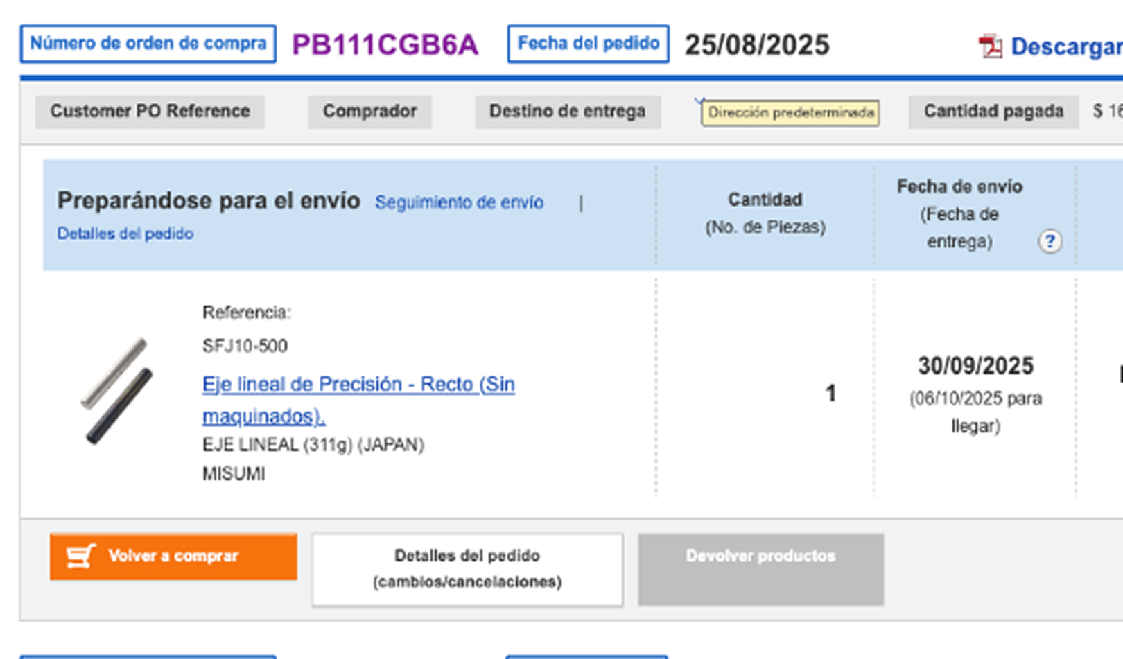 Con las nuevas páginas tienes todos los detalles clave al instante, lo que te permite completar tus pedidos y cotizaciones de forma más rápida y sencilla.