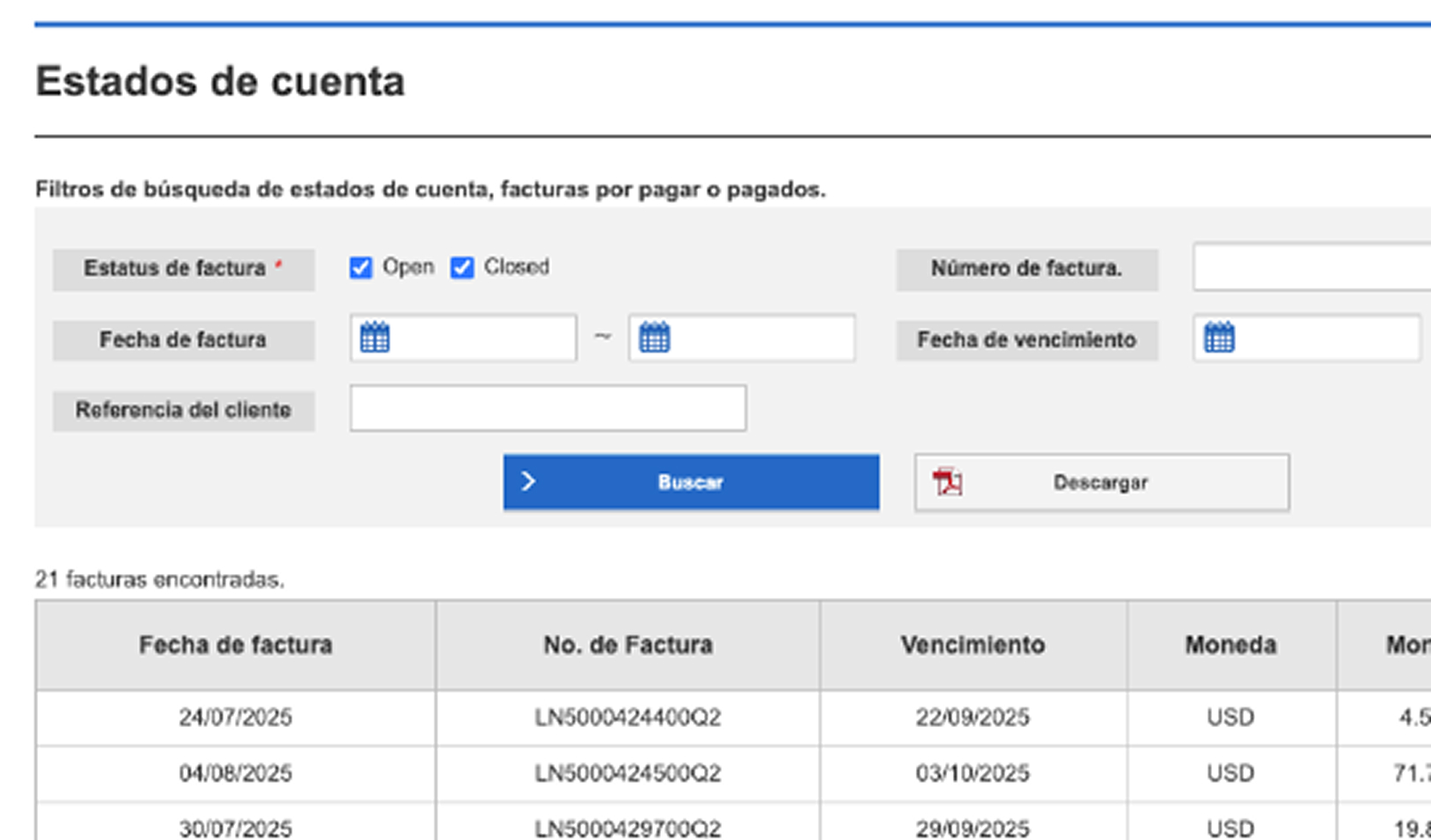 La nueva vista te muestra de forma clara los estatus de tus facturas: pagadas, vencidas o por vencer.