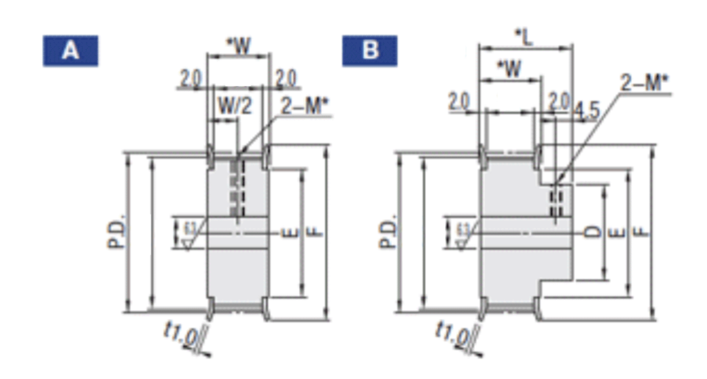 | MXL | XL | L | H | T5, T10 | AT5, AT10 | S2M-S14M | P2M-P5M | UP5M-UP8M | MTS8M | 2GT-EV8YU |